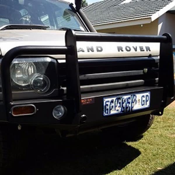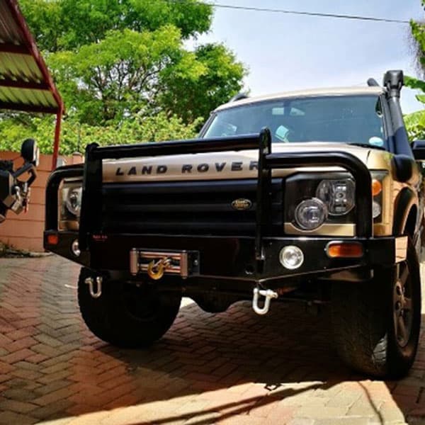 The Land Rover Discovery front replacement steel bumper/Bullbars are made from 3mm steel, and 6mm reinforced brackets that bolt directly onto the chassis for the maximum strength. Add an optional winch mouting plate with reinforcing brackets. The Discovery bumpers are strong yet form fitting but still suitable for harsh offroading, camping, over-landing and 4x4ing. The Steel replacement Disco bumpers are finished off in a Duco heavy duty paint for longevity. The listed price includes lights and shackles. Fitment is simple on the Discovery and can be done at home.