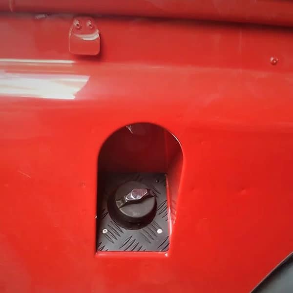 The 2mm thick Aluminium vastrap/checker plate diesel/petrol filler Cap Surrounds for the pre-2007 Land Rover Defender 90, 110, and 130, are designed and made by X Axle. The fuel refilling area always gets grimy and full of stains. This vastrap will protect the paintwork from corrosion and chemical damage and gives off a professional, clean finish!