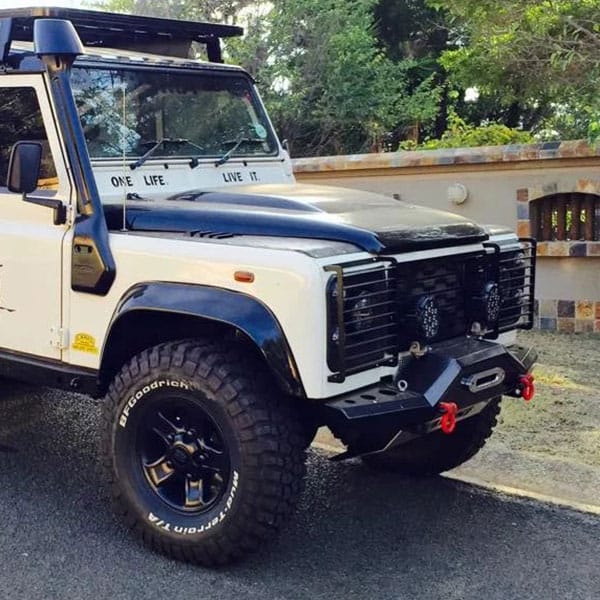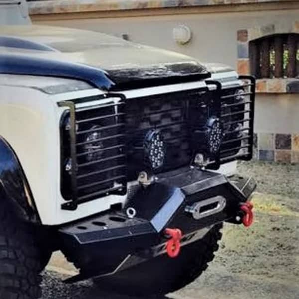 Land Rover Defender Headlight Guard Sets are made in a reinforced structure of 5mm steel to fit all Defender models. These Light Guards bolt over the front headlights and into the body to protect the front lights from frontal accidents, debris, and anything you can throw at them!