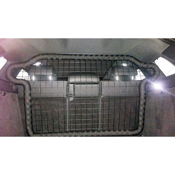 The Range Rover Sport L494 Model (2013 – Present) Dog Guard is made out of welded steel mesh which is cut to a template to fit perfectly into the vehicle. The simple strap-and-go style design allows for easily installation and removal of the dog guard but still secures it tightly to the vehicle so the dogs don’t force their way through. No drilling or assembly is required on the vehicles. A padded protective layer is wrapped over the dog barrier’s edge for protection to your vehicle against scratching when removing or installing, and protection to your dogs from the cage itself.