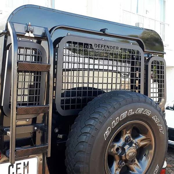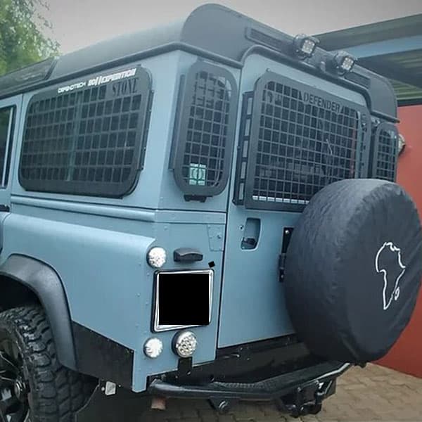 Our Defender Rear Door Window Cage has provision for the wiper and water spray. All Cages are built with 2mm mild steel, with a bent outer frame to ensure rigidity. The Cages pop rivet on to avoid tampering, making it an easy self-job to do.