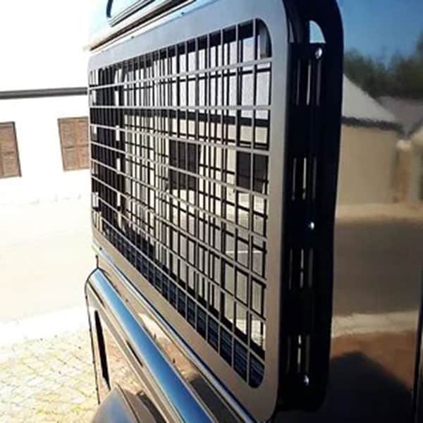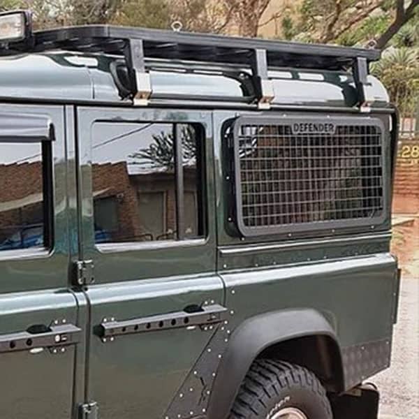 The Land Rover Defender Side Window Cage is designed and manufactured by X Axle locally and will fit on all Defender variants including the 90, 110 and all older Series Land Rovers with standard windows. Our Side Window Cages are built out of a single sheet of laser-cut and bent 2mm steel to ensure rigidity, strength and longevity. The Cage pop rivets on for a tamper-proof finish and makes the installation an easy DIY job to do. These are sold individually in the event that you have a gullwing door on one side of your Landy.