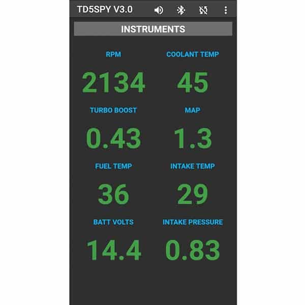 This cost effective solution is simple to install, technically sophisticated and super easy to read. Simply plug the TD5SPY Dongle into your TD5’s OBD2 port, pair your Android or Apple phone with it (via Bluetooth) and you are up and running – it’s monitoring!