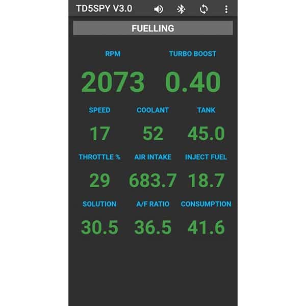 This cost effective solution is simple to install, technically sophisticated and super easy to read. Simply plug the TD5SPY Dongle into your TD5's OBD2 port, pair your Android or Apple phone with it (via Bluetooth) and you are up and running - it's monitoring!