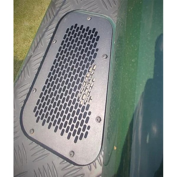 Land Rover Defender Fender Top Air Intake Grill sets are made by X Axle locally. They were designed and cut to allow maximum air intake through the Grills to cool the engine bay on the driver’s side and to feed air through the aircon system on the passenger side. These plates are made from powder-coated steel and are strong enough to stand on and hold the weight of a person while packing the roof rack for camping, overlanding or 4x4ing.