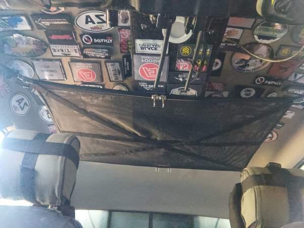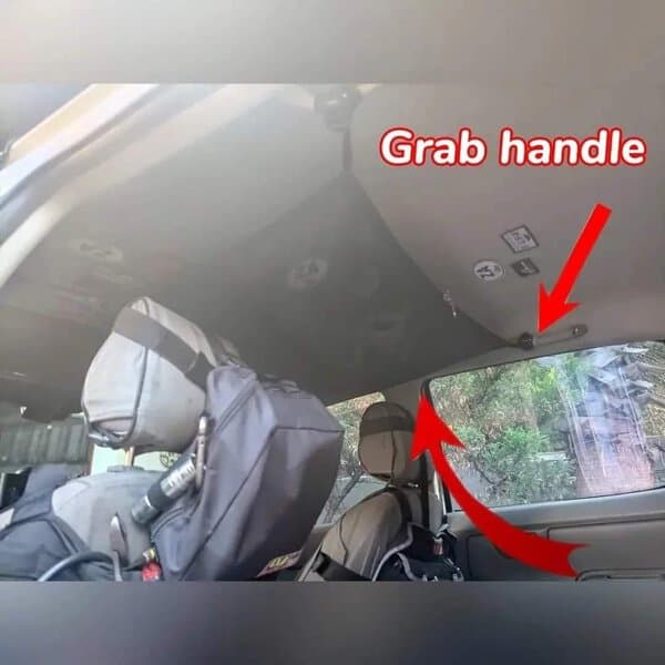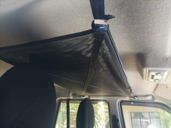 Fully universal the In Car Net mounts onto grab handles in your vehicle. Owners of Defenders without grab handles will need to consider alternative mounts. The In Car Net measures 1,000mm x 500mm. It has 2 zips (4 Heavy duty sliders), and can be accessed from both the front and from the back.